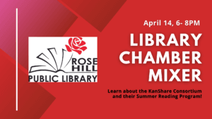 ![]() Join us at our next Chamber Mixer on April 14 from 6-8pm! It'll take place at the Rose Hill Public Library, where they will be talking about the KanShare Consortium and their Summer Reading Program! Please come and enjoy some delicious appetizers and drinks with us as well! Every mixer, we draw a Chamber member … Continued |